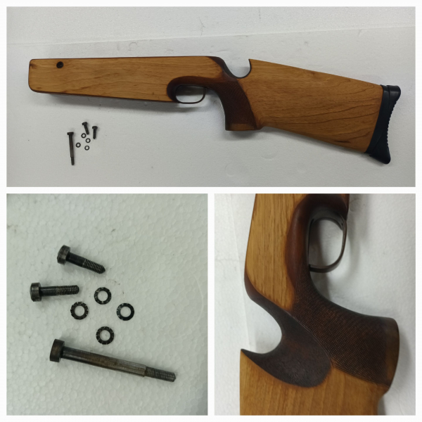 Telefon: 07356-9509284 ------ 1x Walther LGV / LG55 ,,,,SCHAFT - RECHTS ,,,, im Gebrauchten und voll Funktionstüchtigen Zustand ohne Brüche. Der Schaft wurde Augearbeitet / Abgeschliffen und frisch Geölt. Ich vermute, das es früher einmal ein Tiroler oder ein Sportschaft war, da die Abschleifarbeiten darauf Hinweisen. Ich habe vorher auch noch nie solch eine Schaftform bei Walter LG gesehen. Denke, das der Schaft eine Seltenheit ist. Es gibt die Orig. Verschaubungen mit dazu. Habe den Schaft in eine Walther LG55 Probeweise verschraubt und er hat genau wie bei der LGV gepaßt. Beim LG55 werden allerdings 2 kürzere Vordere Verschraubungen benötigt. Der Abzugsbügel und die Schaftkappe sind im Preis mit enthalten. Wem mein Preis zu hoch erscheint, bitte einfach weiter suchen. Bitte beachten sie auch unsere weitere Angebote im eGun. Differenzbesteuerung nach § 25a UStG. Die Ware wird unter Ausschluss jeglicher Gewährleistung/Sachmängelhaftung ohne Rücknahme verkauft. Ich biete KEINE Sammelbestellungen an. Jeder Artikel wird einzeln versendet. Keine Haustürgeschäfte.Versand ins Ausland muß Separat erfragt werden. MFG