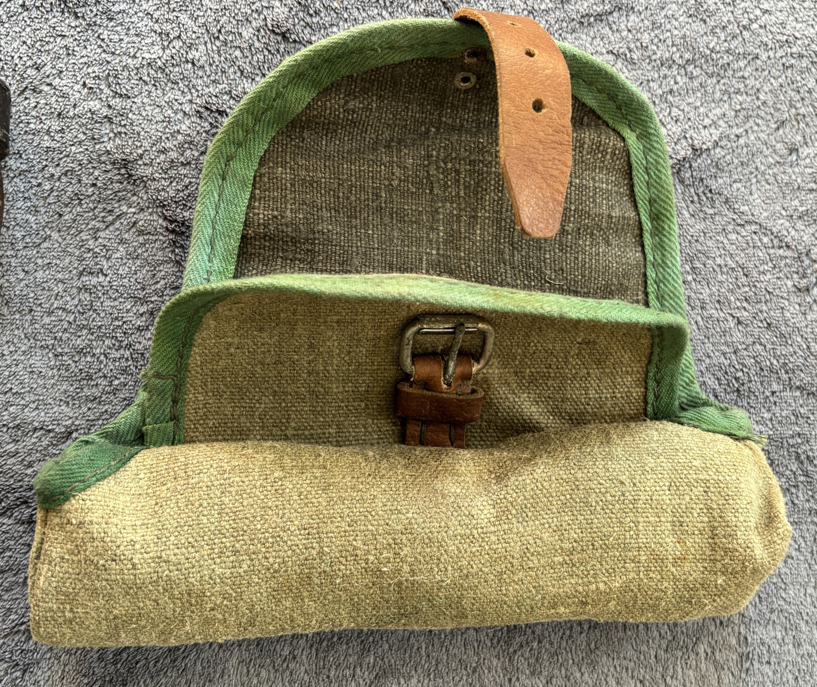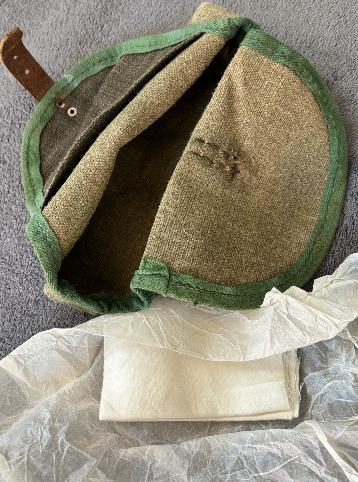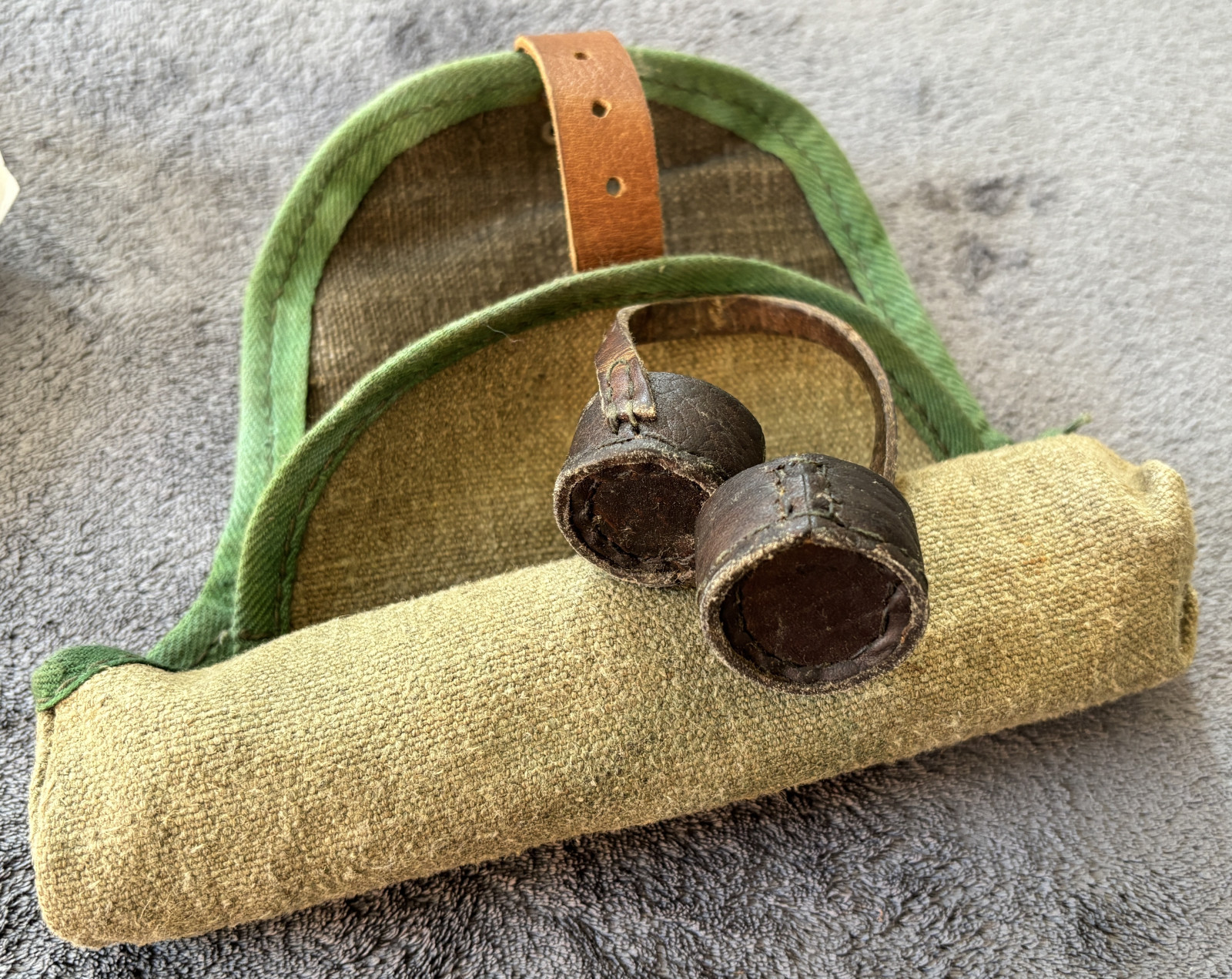Dazu gehört ebenfalls der Lederne Objektiv bzw. Okular Schutz sowie die Leinentasche und das in Papier verpackte Reinigungstuch ( siehe Fotos )