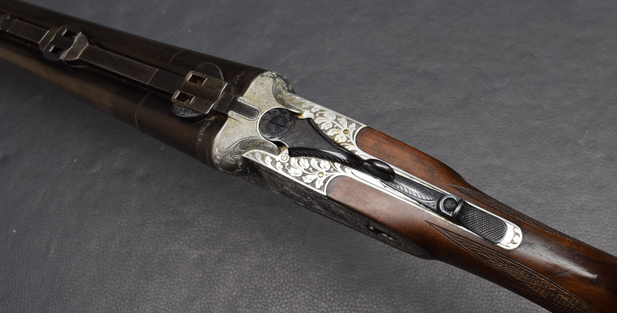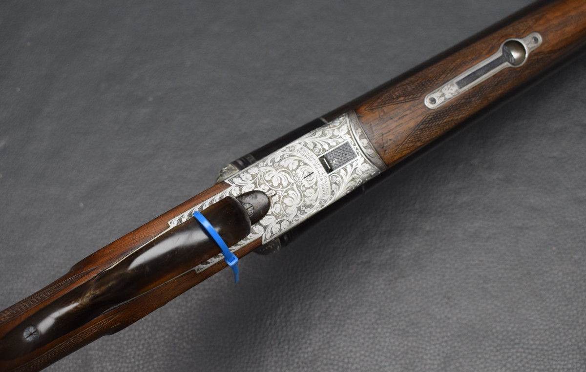 Läufe sehr gut, Brünierung 96%, Schaft gut