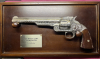 Der Wyatt Earp .44 er Revolver von Franklin Mint hat Originalgröße und ist funktionsfähig.Es ist die nicht schiessfähige Nachbildung eines gravierten Smith & Wesson Revolvers No.3, der von Wyatt oder Virgil Earp im O.K Corral verwendet wurde. Seriennummer 20029, Revolvergewicht knapp 1,1 Kilo,Display-Rahmengröße :46 cm breit und 30 cm hoch.