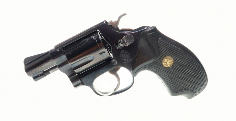 Gebrauchter Revolver Lauflänge 2 Zoll 5-Schüssig Packmayer Gummigriff Baujahr 1974 Brünierung mit Fehlstellen Lauf und Patronenlager gut