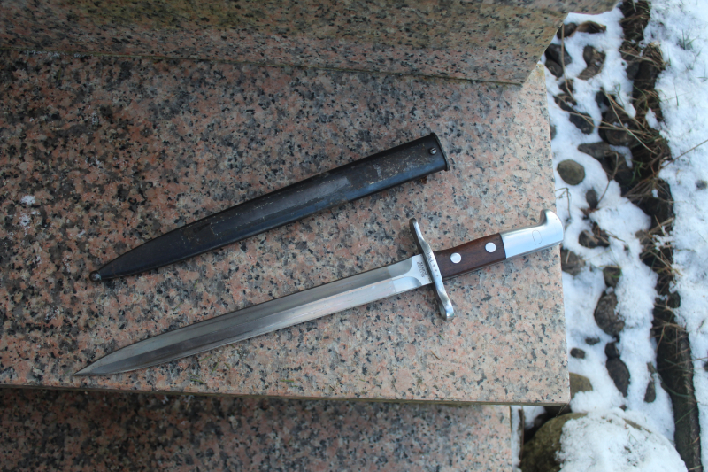 Schweizer Bajonett M 1918 mit Stahlscheide , Länge 43 cm , Klingenlänge 30 cm ,