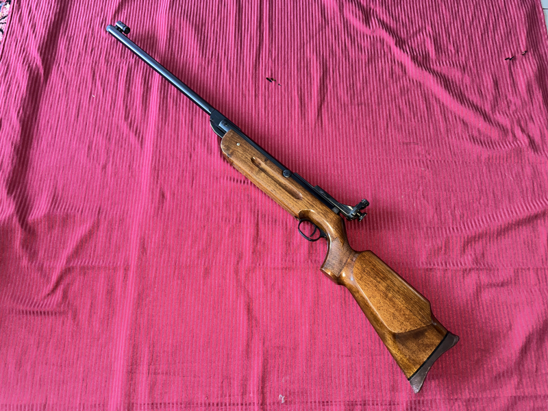 Aus großer Sammlungsaiflösung die Gelegenheit !Eines der besten,qualitativsten Modelle dieser Art,noch beste,damalige Güte&Qualität!Gesuchte Variante mit Schaftbacke,Diopter,Matchabzug usw. in schöner,originaler Erhaltung und so sehr selten!Sammler und Kenner wissen hier Bescheid. 60 -er Jahre.. noch ohne F und mit ordentlich Power,weil es damals keine Joule-Begrenzung gab,Altbestand ist natürlich gesichert,was man hat,hat man...Baut keinen Druck mehr auf,spannen und abschlagen geht einwandfrei,die Dichtung sollte wohl erneuert werden,für geschickte Hände mit etwas Zeit absolut kein Problem bei solchen Modelle ,danach hat man ein fantastisches Gewehr mit Stärke und Präzision!Damals gab es noch keine Leistungsbegrenzung bei solchen Exemplaren,deshalb sehr begehrt unter Sammlern und Kennern...In dieser Güte/Qualität wird leider nichts mehr gebaut,als sich dieses Exemplar sichern!Die Bilder als Beschreibung beachten.Von privat ab 1€ ohne Rücknahme.EU-Ausland Versandkosten 35€.