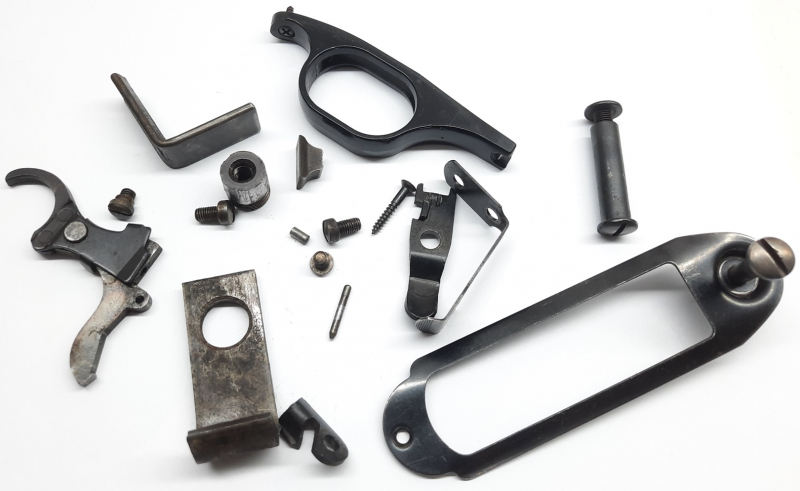 Angeboten ist ein Konvolut Ersatzteile für Flinte Repetierer Mossberg & Sons Model 190KB Kal. 20/70. Freie Teilesatz.