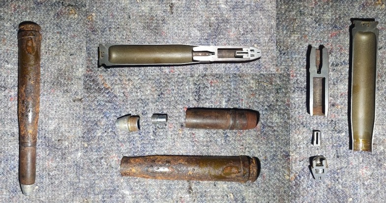 Hülse, Geschoss, und Kopf mit Kapsel wie zu sehen zerlegbar.