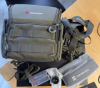 Im Set ist alles enthalten, wie auf den Bildern zu sehen: eine Tasche, diverse Umhängeschlaufen (teilweise noch unbenutzt) und ein zweiter, unbenutzter Sensor. Das Ladegerät für die Akkus ist ebenfalls dabei.