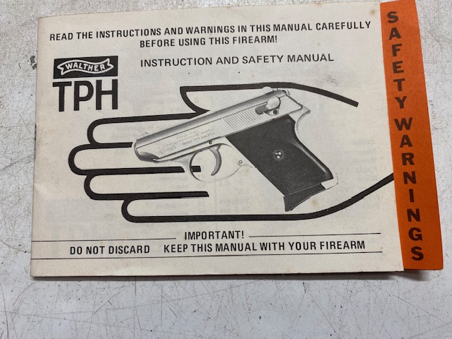 Zum Verkauf kommt eine Bedienungsanleitung für eine Walther TPH Kal..22 in englischer Sprache.