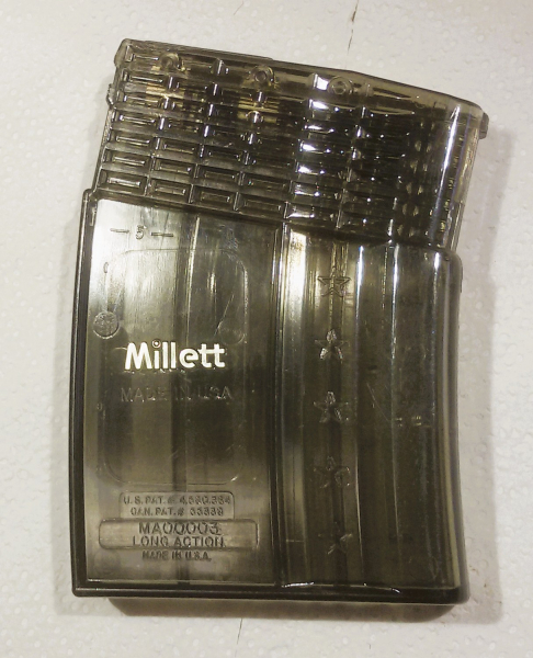 Bei dem Artikel handelt es sich um ein gebrauchtes Magazin von Millett (Long Action) für Büchsen der Marke Remington. Das Magazin ist für folgende Modelle geeignet: 740, 742, 760, 7400, 7600. Es können nachfolgende Kaliber geladen werden: .30-06 / .270 / .280 / 7mm Express.