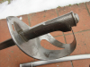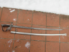 90 cm lange Stabrückenklinge in guter Erhaltung , auf der Fehlschärfe Hersteller : ALEXANDER COPPEL SOLINGEN ( Hersteller von Blankwaffen 1860- 1936, dann arisiert und unter dem Namen ALCOSO bis 1945 ), auf der Gegenseite altes Firmenlogo, gebauchter Eisenkorb, ganze Griffkappe, originaler Holzgriff , Gesamtlänge : 106 cm. Originale Eisenscheide in einer excellenten Erhaltung, kein Rost, keine Dellen. Säbel geht sauber gleittend in die Scheide. Porto wegen Überlänge ( Sperrgut ) 28 Euro.