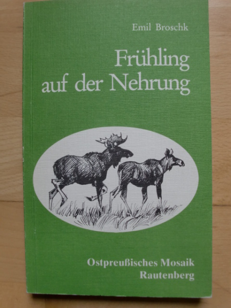 FRÜHLING AUF DER NEHRUNG - Ostpreußisches Mosaik - Jagd- und Tiergeschichten - von Emil Broschk, Verlag Gerhrd Rautenberg, Leer 1979, 172 Seiten mit Zeichnungen von Wilhelm Eigner - Inhalt u.a.: Im Elchrevier / Frühling auf der Nehrung / Die alte Eiche / Das graue Gesicht / Ein Brunft-Abend / Am großen See / Der alte Keiler / Rund um den Schnepfenbaum / Die erste Neue / und anderes mehr - Leichter Abrieb am hinteren Buchdeckel, sonst guter Zustand