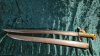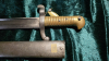 Recht saubere Jataganklinge mit Herstellergravur auf dem Klingenrücken, Messinggriff, Parierstange gestempelt "M510",Scheide nummerngleich. der Drücker funktioniert, mit Scheide, recht gut erhalten, wurde aber mal geputzt. Zustand 2-