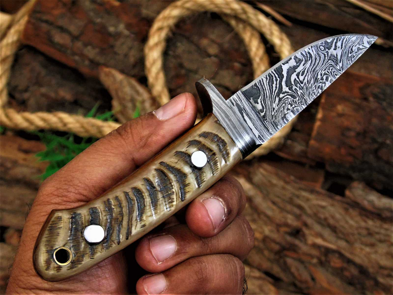 Hier erhalten Sie ein sehr schönes Hand geschmiedetes Damast Jagd Messer in reizvoller schöner Klingenmaserung