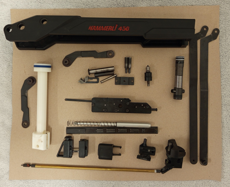 Ich verkaufe hier diverse Ersatzteile für Hämmerli 450 : Abzugsgruppe, Kolben, Ventil und andere.