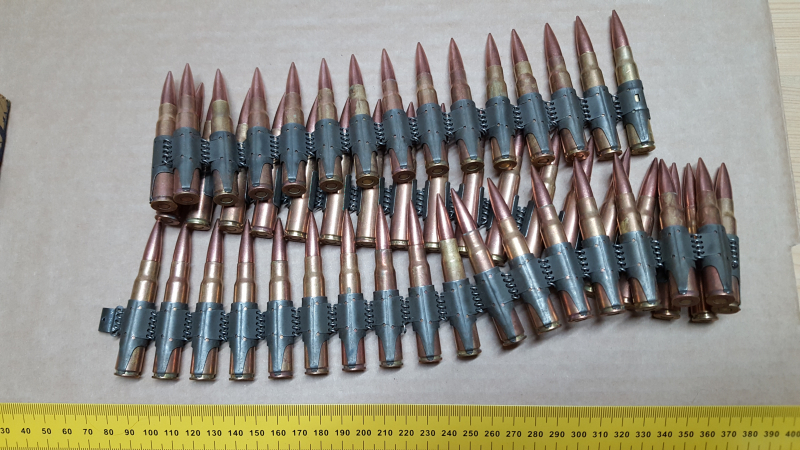 Sammlermunition: 50 Dekopatronen 7,9x57 auf Gurt. Spanien 1956.