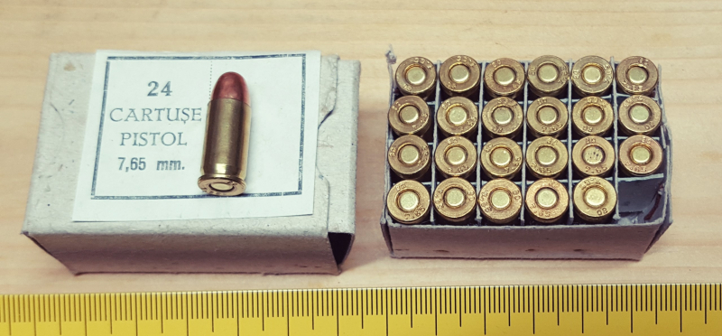 Sammlermunition: 24 Dekopatronen 7,65 Brng. in Schachtel.