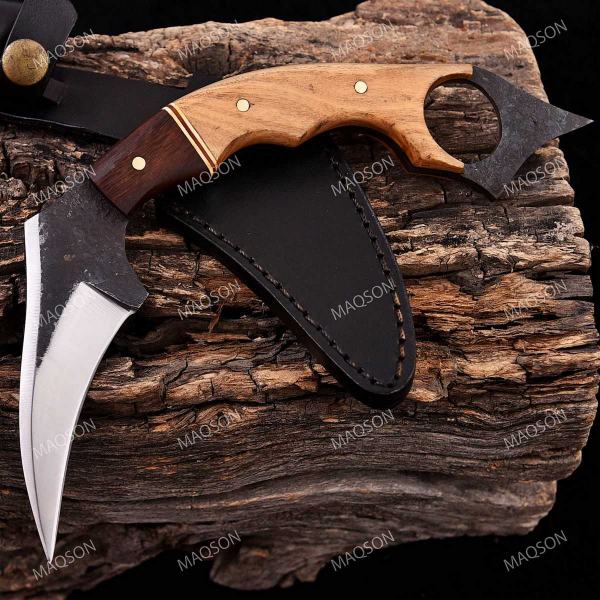 Hier erhalten Sie ein sehr schönes Hand geschmiedetes Damast Jagd Karabet Messer in reizvollem schöner Klingenmaserung Messer Jagdmesser Hunting Skinner Hand geschmiedetes High Quality Carbon Stahl,1095 Steel Blade Die ebenfalls Hand gefertigte Leder Scheide besteht aus hochwertigem Rind Leder.