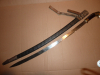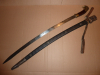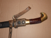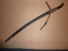 Sehr hübscher sauber gearbeiteter russischer Kosakensäbel, auch als Schaschka bezeichnet mit einer verzierten Scheide und Koppeltrageriemen. Gesamtlänge ohne Scheide 88 cm, die noch mit Gravurresten versehene Klinge ist 73 cm lang.