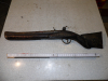 Kleines Tromplon Gewehr, reich verziert. Lauf aus Bronce oder Messing verstopft, nicht durchgängig bis zum Zündloch. Federn der Batterie sehr schwach. Laufinnen vorn gemessen 24 mm. Aus Nachlass, war Wanddeko. Sicher nicht schussfähig.