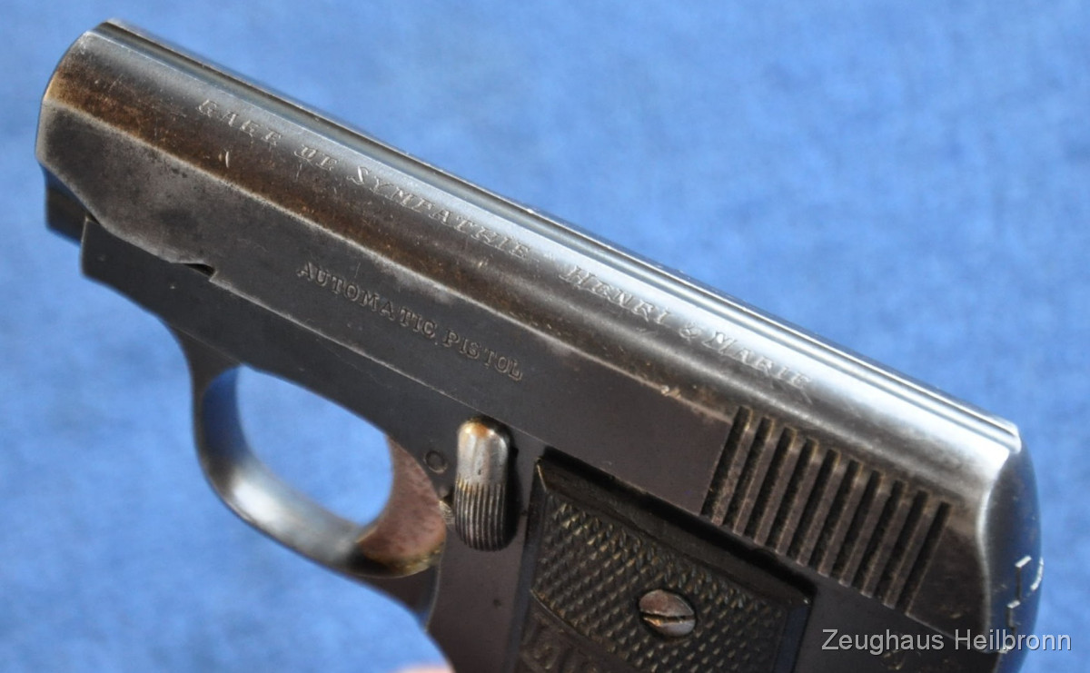 Waffe graviert mit "Gage de Sympathie Henri & Marie"
