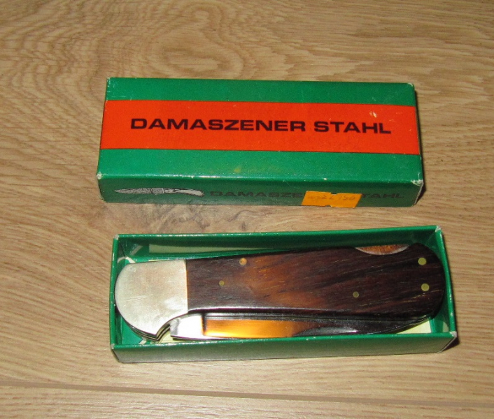 Aus dem Nachlass meines Vaters. Taschenmesser mit arretierender Klinge (bzw. arretierender Minisäge) in HERBERTZ-Pappschatulle. ...und während ich den Text hier schreibe, merke ich, dass die Verpackung nicht von dem Messer ist - auch wenn es perfekt reinpasst. Also ein HUBERTUS-Messer, mit "HERBERTZ" Modell 504 Verpackung, der Stahl ist rostfreier, handgeschmiedeter Edelstahl, kein Damast.