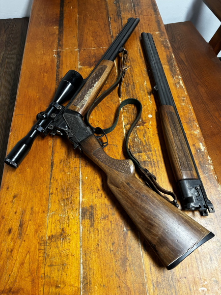 Frankonia BBF Kaliber 5,6x50R Mag und 12/70 mit Wechsellaufbündel 12/70. Zielfernrohr Steiner 10x56. Zustand siehe Fotos.
