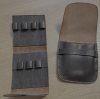 Das aufklappbare erste Etui mit Knopfverschluss enthält 7 gegeneinander versetzte Lederschlaufen für Kuglepatronen. Patronen etwa der Größe 30-06 sollten passen. Der Knopfverschluss hält sicher