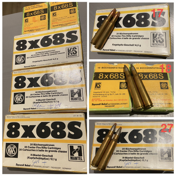 Es handelt sich um Jagdpatronen der Firma RWS im Kaliber 8x68S: