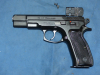 Pistole CZ Mod. 75 cal. 9mm. Die Waffe wurde von einem BÜMA für MOS umgebaut (und neu beschossen). Somit kann auf der Waffe mit der passenden Platte ein Red-Dot montiert werden. Die Waffe ist in sehr gutem Zustand (siehe Bilder). Die Original Kimme ist mit dabei. Die Waffe kann auch als freies Kleinteileset (+20.- ) erworben werden. Den Export führt für uns z.B. die Fa. Waffen-Bock oder ein Händler Ihrer Wahl durch. Bei Fragen Tel. 06031/ 79 15 283