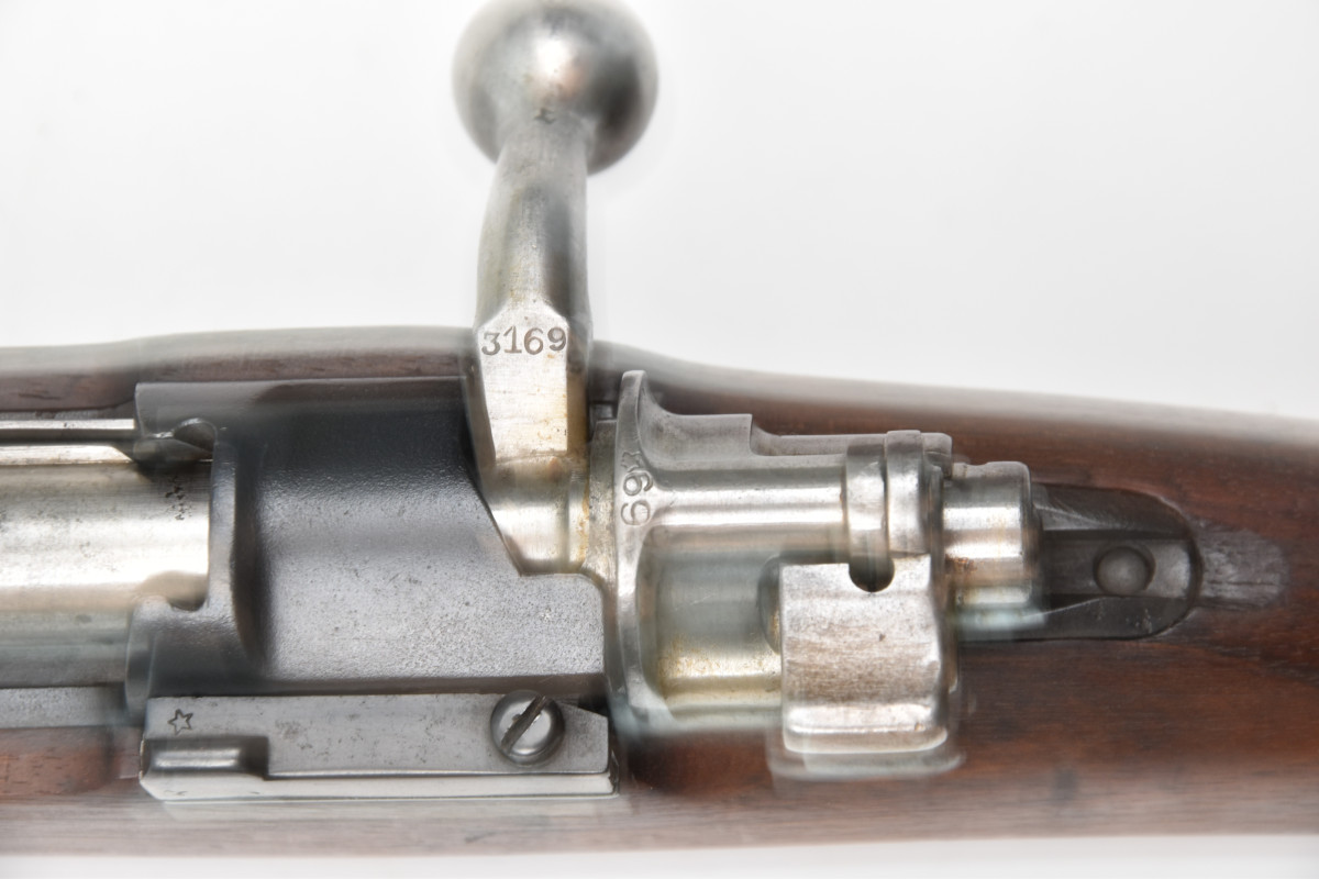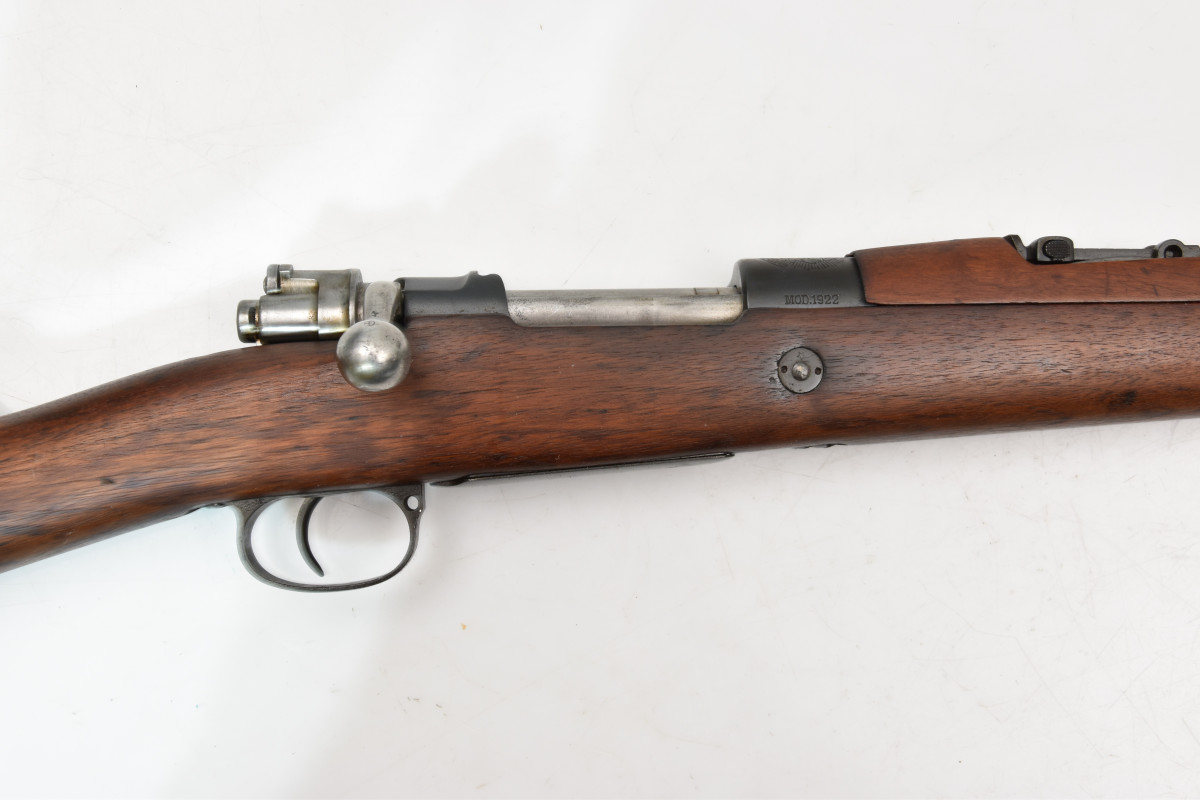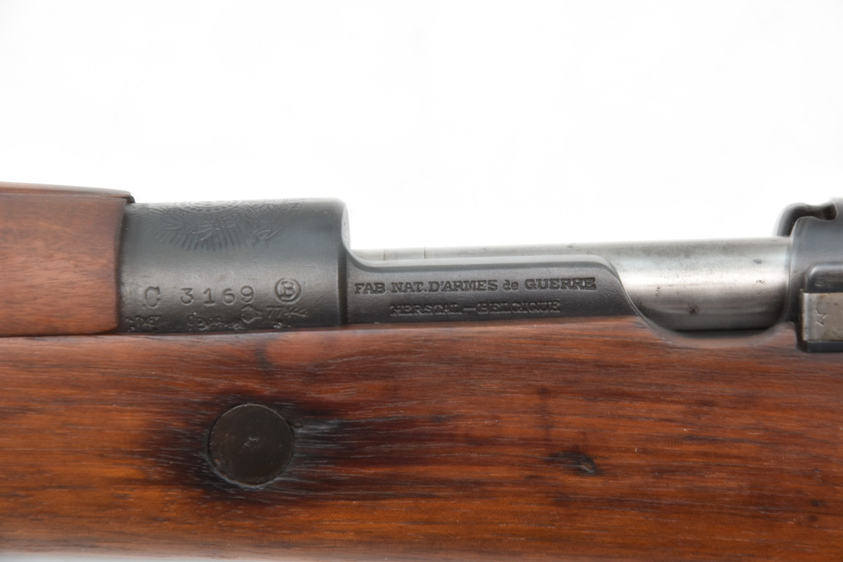 Sie bieten hier auf eine gebrauchte Repetierbüchse mit Mauser-System, gefertigt von FN (Fabrique National d‘Armes de Guerre Herstal-Begique) Mod. 1922 für Brasiien im Kaliber 7x57 in der kurzen Karabinerausführung. Die Waffe ist bis auf den Schaft nummerngleich, hat Zivilbeschuß und befindet sich in einem sehr guten Zustand (siehe Bilder), der Lauf ist blank mit scharfen Zügen.