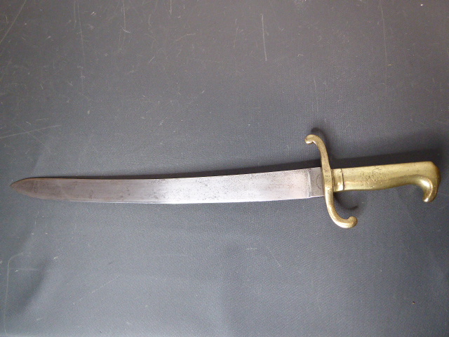 Aus meiner Sammlung gebe ich, ein altes Preußisches UM Faschinenmesser ohne Scheide, mit Hersteller Regimentbezeich. ab. Kenner werden es sicherlich wissen wo das Teil hingehört. Gefäß mehrteilig aus Messing, Parierung gestempelt, Regiment Bezeichnung R. F. C. 3. 69. Breite einschneidige Klinge, auf eine Seite Hersteller? den kann ich aber nicht entziffern, andere Seite O 1868 gestempelt. Das Teil ist im Sammelwürdigen Zustand. Alles andere entnehmen Sie Bitte den Fotos. Gesamtlänge: 56,3 cm, Klingenlänge: 43,5 cm, Klingenbreite: 3,5 cm. Kann zu jederzeit bei mir besichtigt werden. Privatauktion keine Rücknahme und Garantie.