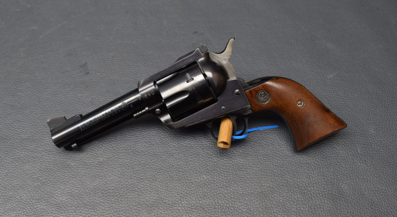 Holzgriffschalen mit Ruger Logo. Lauf und Trommelbohrungen sehr gut, Oberfläche 97%