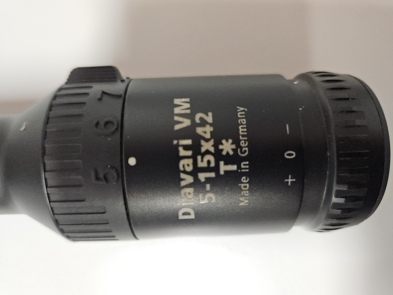 Zielfernrohr Z E I S S Diavari VM, 5-15x42 mit Absehen 4, 337mm lange und 450g leichte Zieloptik " Made in Germany "mit hoher Vergrößerung für weite Schüsse. Das ZEISS Diavari VM 5 - 15 x 42 mit Absehen - 4 - . Das Abs. liegt in der 2. Bildebene und wird nicht mitvergrößert. Die T* Mehrschichtvergütung ist Garant für höchste Lichttransmission. Stabiler, stickstoffgefüllter Rohrkörper aus eloxiertem Leichtmetall. Einfache Montagemöglichkeit durch die patentierte Zeiss Innenschiene. Das ZF präsentiert sich im sehr guten Zustand. Objektivunterseite leichter Kratzer vom Schwenkmontagering. War nicht verklebt. Details siehe Bilder.