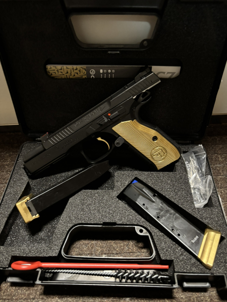 Das limitierte Sondermodell Pistole CZ SHADOW 2 OR Goldigger hat als prägnante Merkmale goldfarben