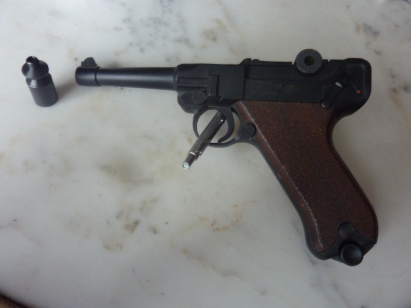 biete hier eine Pistole Record Luger 08 im Kaliber 8 mm Knall und Reizgas. Aus der Pistole wurde noch kein Schuß abgegeben, somit denke ich, das sie im Bestzustand ist. Ich denke die Griffschalen sind aus Holz. Die Pistole wird mit Magazin und Abschußbecher geliefert.
