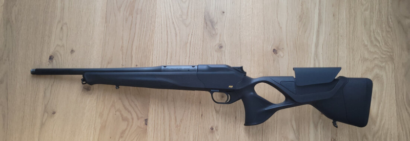 Blaser R8 Ultimate mit einer Schussbelastung von unter 150 Schuss. Nachgerüstet wurde eine verstellbare Schaftbacke und eine Riemenöse zur Zweibeinaufnahme. Riemenbügel im Lieferumfang enthalten. Die Kammerstengelkugel wurde mit einer Fischhaut griffig gemacht. Gewinde: M15x1 Die Waffe hat einen 47 cm Lauf und kommt damit auf eine Gesamtlänge von nur 92 cm. Sie ist in sehr gutem Zustand! Verkaufe Waffe von einem guten Kumpel. Die Präzision ist mit Schalldämpfer auf 100 Meter bemerkenswert. Die Schussgruppen liegen im Bereich eines Zwei-Euro-Stückes.