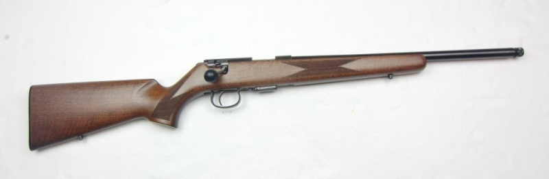 Sie bieten auf eine Repetierbüchse Anschütz Mod.1517 im Kaliber .17HMR. 45cm Lauflänge mit Mündungsgewinde ½“x20UNF (Lauf von innen ohne Mängel), 11mm Prismenschiene auf der Hülse zum Montieren eines Zielfernrohres, seitliche Schiebesicherung, herausnehmbahres 4-Schuß Magazin, Direktabzug, lackierter Nußbaumholzsachaft, Rieme4nbügelösen, Schaftlänge 36,5cm, Gesamtlänge 92,5cm. Sehr guter Zustand!!!