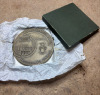 Offizielle Gedenkplakette – 122.º Aniversário da Polícia de Segurança Pública (PSP), Portugal, 1989----vermutlich Bronze, 224 Gramm schwer, 90mm Durchmesser, ca. 5mm stark----Sehr guter Erhaltungszustand • Klare, scharfe Reliefs • Gleichmäßige, altersgemäße Patina • Keine Beschädigungen oder Brüche erkennbar----Ausgabe im Rahmen der offiziellen nationalen Jubiläumsveranstaltungen der Polícia de Segurança Pública im Teatro Nacional de Sao Carlos. Solche Plaketten wurden üblicherweise in begrenzter Stückzahl gefertigt und an geladene Gäste, Funktionsträger oder beteiligte Institutionen überreicht.----