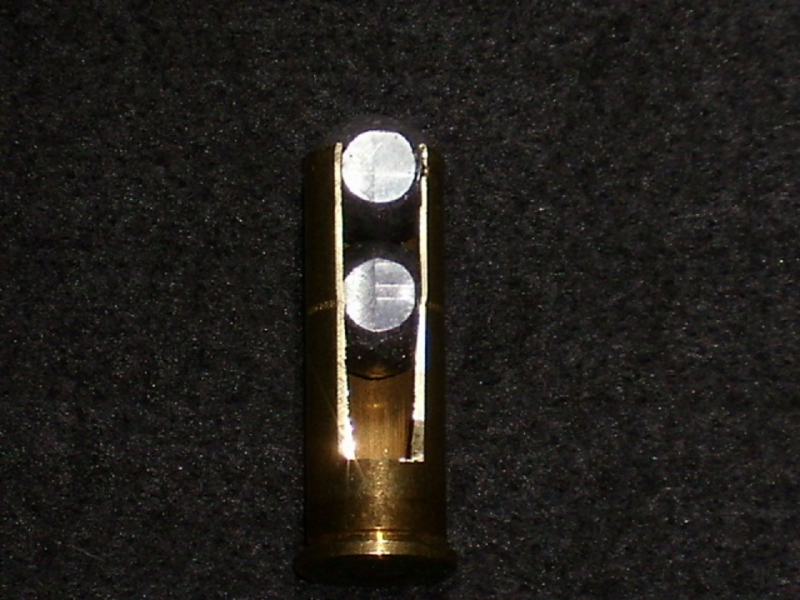 aus Sammlung , cal.38 Spl. Multiball (2 Geschosse) , Schnittpatone , Maschinenschnitt