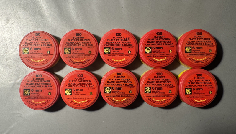 Biete 1000 Platzpatronen von RWS Dynamit Nobel Cal. 6 mm Flobert Platz. Die Platzpatronen stammen aus den 70 / 80er Jahren, wurde trocken und kühl gelagert. Löse einen Teil meiner Sammlung auf. Für Sammler sicherlich interessant. Die Firma RWS / Dynamit Nobel gibt es schon lange nicht mehr. Versandkosten trägt der Käufer. Privatverkauf! Keine Garantie! Keine Rücknahme!