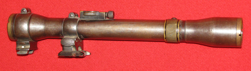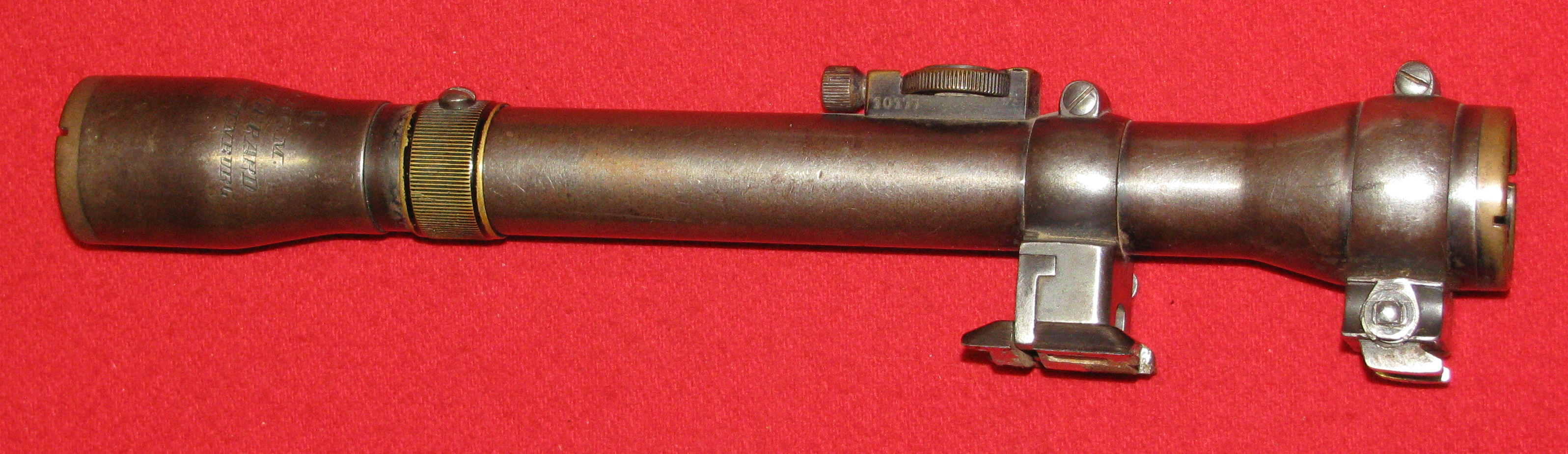 Zum Verkauf kommt ein ZF / Zielfernrohr / Stahlglas, ein G, ( 4x ), D.R.G.M. Dr. W. GERARD CHARLOTTENBURG mit Sonderabsehen und sehr interessanter Montage
