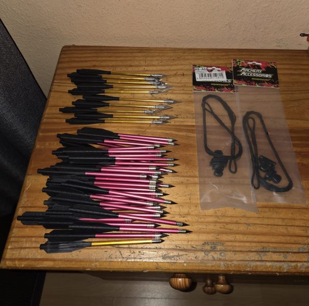 Biete Bolzen und Sehnen für Aligator Armbrust. 10 der Bolzen sind Jagdbolzen. Die normalen Bolzen wurden provisorisch verklebt damit die sich nicht zerlegen. Altersnachweiß erforderlich!