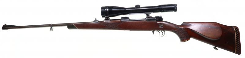 Gebrauchte Repetierbüchse Zeiss 2,5-10x52 Abs. 1 Suhler Einhakmontage Fügelsicherung (nicht funktionsfähig) seitliche Schiebesicherung deutscher Stecher Schaftlänge 37cm Schaft und Brüierung mit Gebrauchsspuren Lauf innen gut