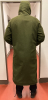 Auf den Bildern habe ich den Mantel an. Ich bin 185 groß und wiege 90 kg. Konfektionsgröße 52. Mit geschlossenem Reisverschluss habe ich noch jede Menge Platz für Unterkleidung.