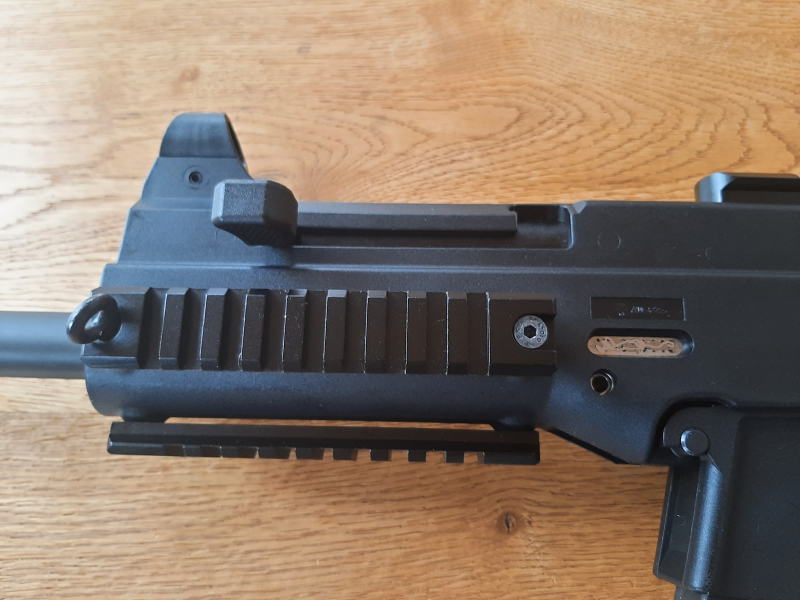 Picatinny Schiene am Vorderschaft (links/rechts und unten) sowie oben auf dem Gehäuse zur Montage zusätzliche Zieloptiken