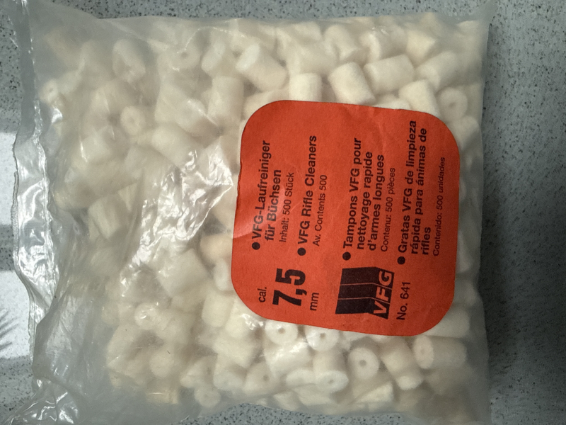 VFG Laufreiniger, Kaliber 7,5mm, Packung mit 500 Stück nicht ganz vollständig, aber nahezu