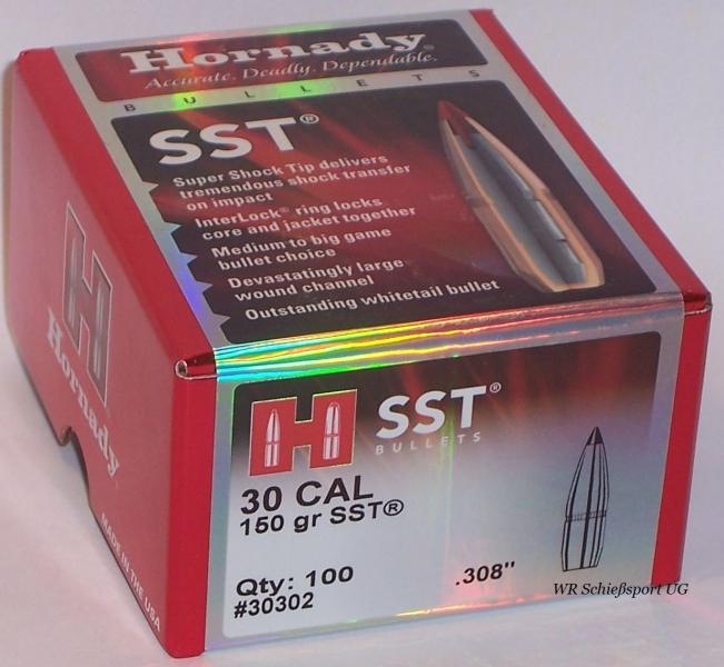 Hornady SST - Ideal für die Drück-, Gebirgs- und Trophäenjagd! Das Hornady SST (Super Shock Tipped) Geschoss ist DAS Wirkungswunder von Hornady! Es bietet maximale Geschwindigkeit - im Flug und in der Wirkung! Durch die langgestreckte Sekant-Ogiv-Form mit Polymerspitze und Torpedoheck besitzt das SST eine Top-Präzision sowie maximale Reichweite und Ziel-Energie. Die verdeckte Polymerhohlspitze sorgt für eine blitzartige Geschoßexpansion und maximale Energieabgabe für kürzeste Fluchtstrecken. Eine tiefe Penetration wird durch den antimongehärterte Bleikern und Geschossmantel mit Interlockring erreicht.