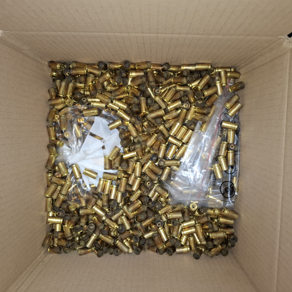 Die Hülsen wurden in einem Indorstand mit einer Sig Sauer P226 X Six verschossen. Es sind 3.000 Stück unbehandelte Hülsen !!. (gewogen)