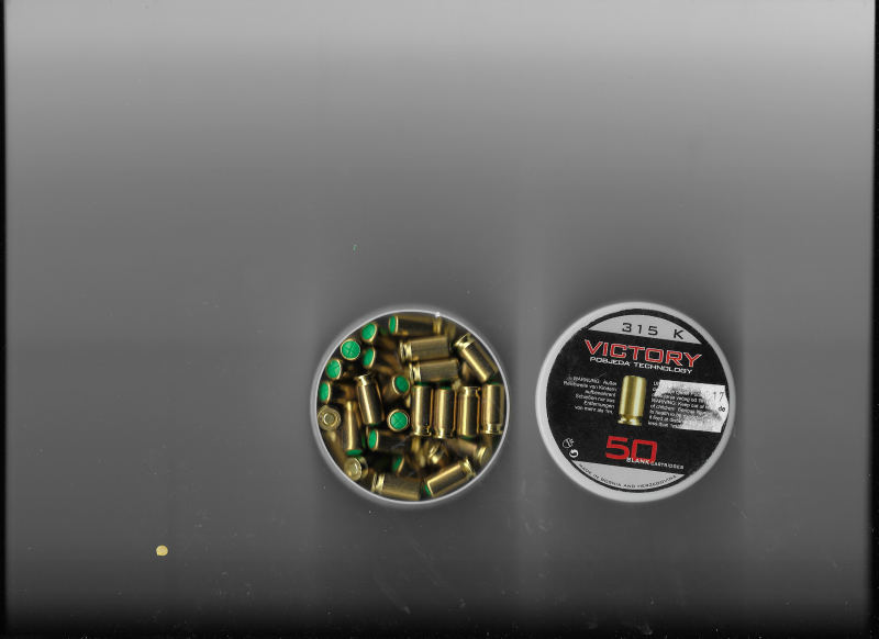 Zur Auktion steht eine volle Dose(50 St.) "Victory" Knallpatronen Kal. .315! Die Patronen sind sehr stark geladen,extrem laut, und besitzen ein imposantes Mündungsfeuer! Das Hülsenmaterial ist Messing und die Kartuschen sind im neuwertigen Zustand!