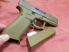 Glock 19 X Gen. 5, Kal. 9mm Luger, in Coyote Ausführung, Waffe wird so ohne weites Zubehöhr verkauft. Waffe hat an der Mündung deutliche Schmauchspuren. Lauf innen sehr gut, gültiger Beschschuss vorhanden.