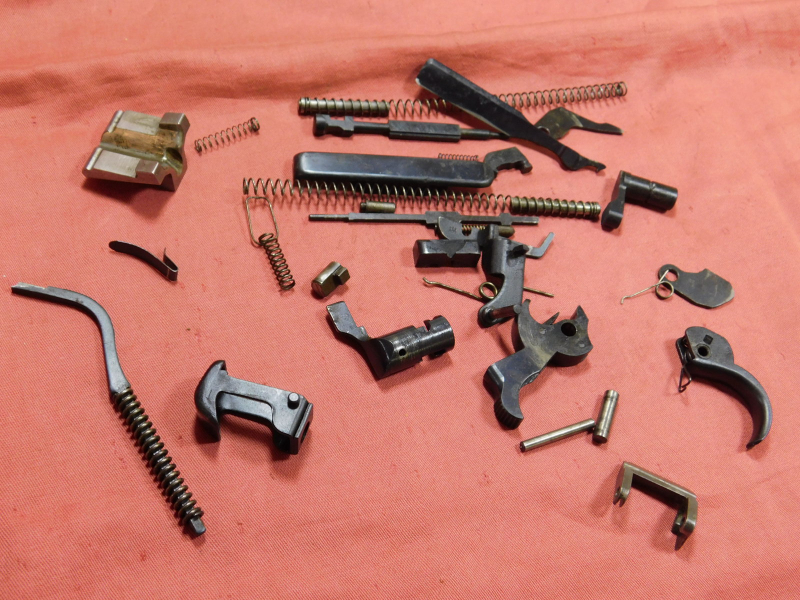 Originalteile, alle freien Teile, einer Walther P38 aus dem 2. WK. frühe Fertigung evtl. ac41 das teilweise Teile mit 359 gestempelt sind. Es fehlen nur das Korn und aus dem Griffstück der Riegeldruckstift mit Feder, Magazin und Griffschalen in weiteren Auktionen. Achtung jetzt zugreifen, die Teile werden immer seltener.